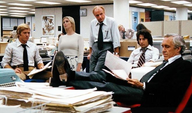 Neste caso, a paródia coloca Ivanka Trump em uma cena do filme Todos os Homens do Presidente — cujo roteiro foi baseado na história de uma dupla de jornalistas que, nos anos 70, investigou um escândalo envolvendo uma rede de espionagem e lavagem nos Estados Unidos para o jornal The Washington Post