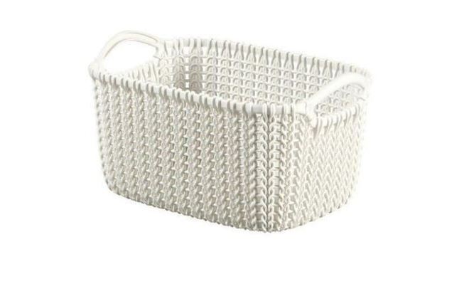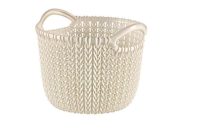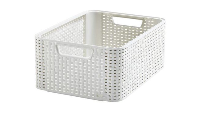 Inspirado na palha tradicional, o cesto Style Curver é fácil de limpar e ideal para grandes objetos, como sapatos e botas. Tamanho 18 litros, cor off white