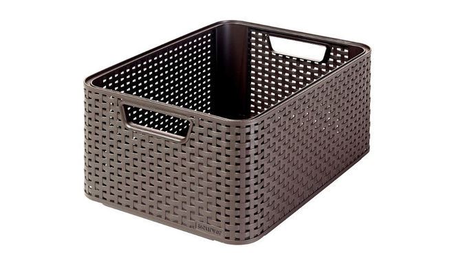 A caixa organizadora Style Curver é prática e imita a palha tradicional. Ideal para armazenar mantimentos ou até aquelas louças da cozinha que não cabem no armário. Tamanho 18 litros, cor marrom