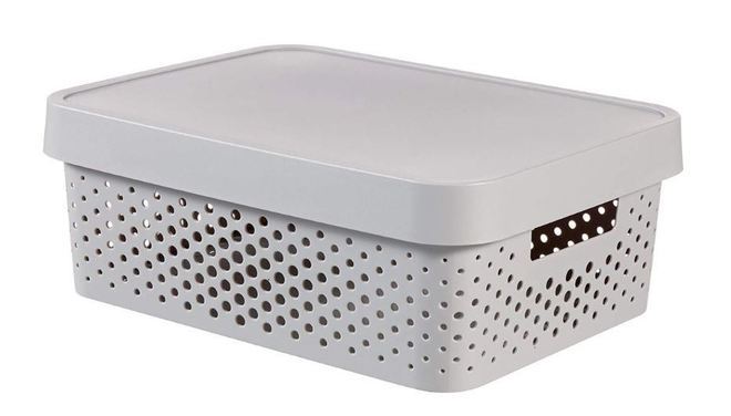 O Modular Infinity também aparece na versão de 11 litros. O layout vazado ajuda a não manter o objeto totalmente fechado. Ideal para prateleiras da sala ou do quarto. Cor cinza