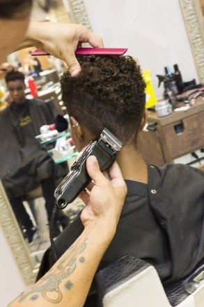 Com máquina de acabamento faça o desenho escolhido. Na modelo foram feitos riscos tribais da lateral até inferior da nuca