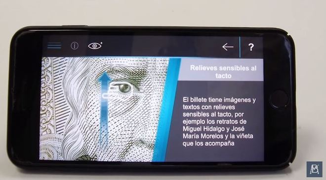Aplicativo lançado pelo Banco Central do México ensina a população como usar os itens de segurança do dinheiro para identificar falsificações. App mostra como encontrar e como encontrar a marca d'água, a textura do papel moeda e até usar a lanterna do celular para fazer um teste