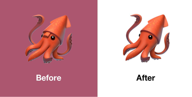 Antes, o emoji de polvo não tinha ventosas em seus tentáculos, usadas na locomoção e para capturar presas. A correção no iOS 13 foi feita e o design do polvo ganhou esses detalhes
