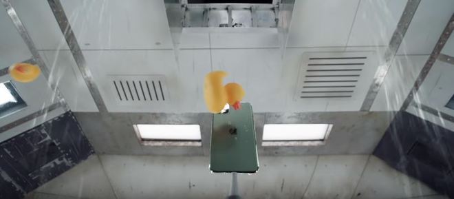 Quando parece que acabou, patos de borracha são jogados violentamente no iPhone que, novamente, resiste sem qualquer dano