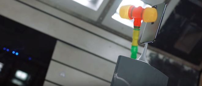 O primeiro objeto a ser lançado em um túnel de vento contra a parte traseira do novo iPhone 11 é um martelo de plástico. O brinquedo acerta em cheio e nada acontece, como seria esperado em qualquer situação