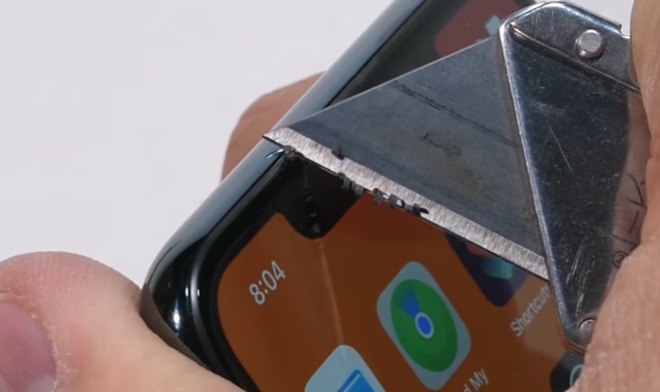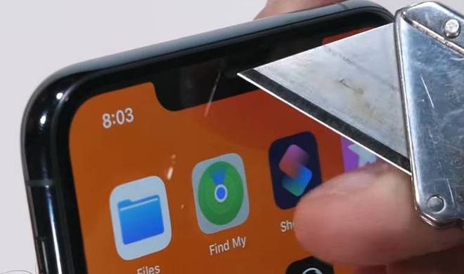 O estilete também foi usado na câmera frontal e causou alguns arranhões