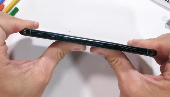 Ao colocar uma força contrária para tentar entortar, o smartphone passou no teste e não cedeu, como aconteceu com teste semelhantes em modelos anteriores