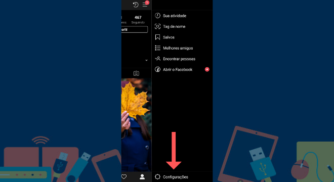 Com o perfil aberto, toque nas três linhas no canto superior direito da tela. Para continuar com a ação, toque em configurações