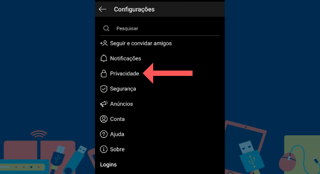 Na aba de configurações, toque em privacidade para realizar os filtros de comentários no Instagram