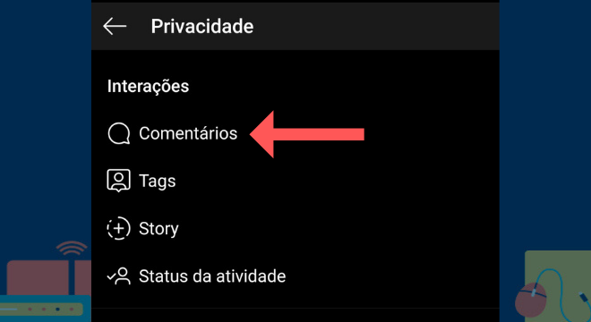E agora, na aba de interações, toque em comentários para seguir com a ação