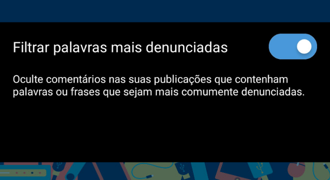Com a ferramenta ativada, o usuário não receberá mais comentários cunho ofensivo em suas postagens