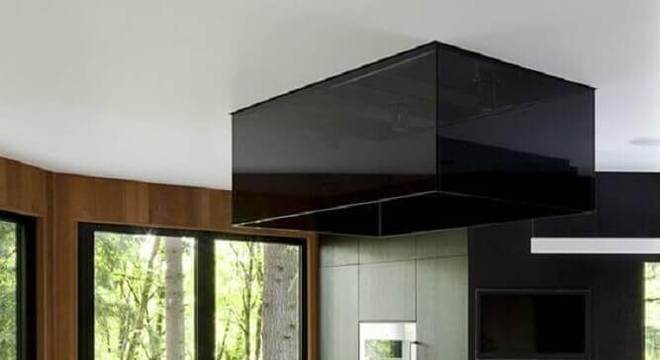6. Decoração para cozinha com bancada de concreto e armários pretos planejados – Foto: Futurist Architecture