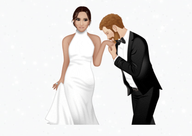 A Megan Markle já era conhecida antes de se tornar a esposa do Duque de Sussex. Ela é atriz e fez sucesso nas redes sociais por conta do seu último papel em uma série norte-americana. O sonho de princesa virou realidade e o casamento foi um momento muito aguardado por todos que acompanham o dia a dia da realeza britânica. No paco de stickers, a duquesa aparece ao lado de Harry vestida de noiva