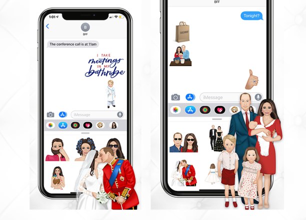 Além de ter perfis nas principais rede sociais, agora a família real tem uma nova versão online, os stickers. As figurinhas da família real brincam um pouco com o dia a dia das duquesas Kate Middleton e Meghan Markle e de seus respectivos maridos, príncipes William e Harry