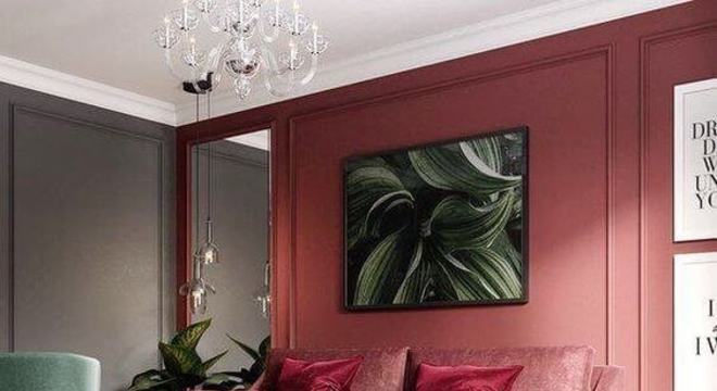 Essa é uma ótima ideia para quem gosta de investir em sofás neutros. A parede pode ser um entre os diferentes tons da paleta de cores vermelho, e outros detalhes como a manta do sofá também, como feito na foto acima.