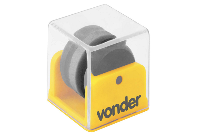 O material do corpo do afiador é feito de poliestireno (plástico) de alta resistência.