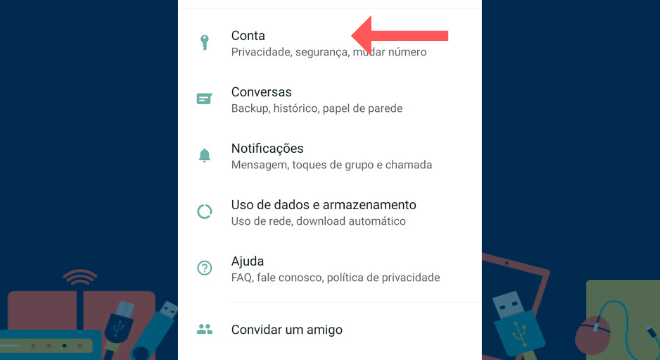 Em configurações, selecione Conta para ser direcionado a aba do novo recurso