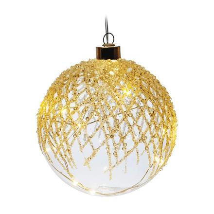 Nesta bola decorativa, LEDs na cor branca dão um incrível efeito com o brilho dourado. Funciona com pilhas AAA e pode ser higienizada com pano úmido, porém, apenas quando desligada e totalmente fria.