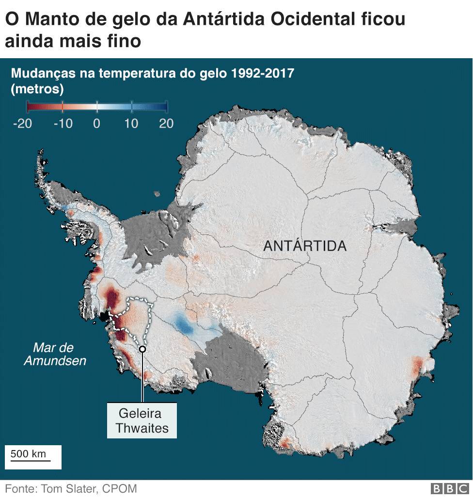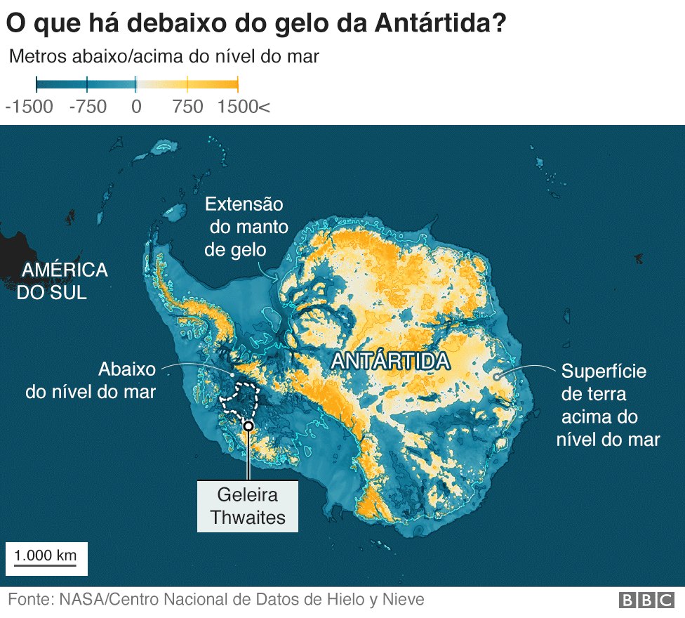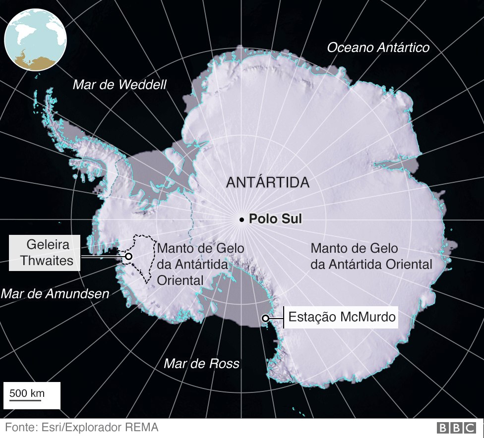 A Thwaites se localiza no chamado Manto de Gelo da Antártica Ocidental, uma vasta bacia de gelo que poderia aumentar o nível dos oceanos em três metros.