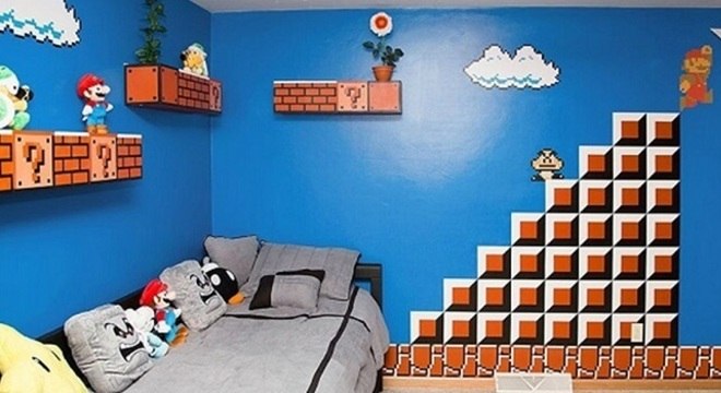 5. Que tal um papel de parede divertido com frutas ou Mapa Mundi? Fonte: Pinterest Desenhos animadosQuem disse que os papéis de parede de super-heróis foram feitos só para colocar no quarto das crianças? Não, não, tem muito marmanjo fã de carteirinha de desenhos animados e filmes que adora decorar qualquer cômodo da casa com seus ídolos e ainda com muito estilo pra ninguém botar defeito!