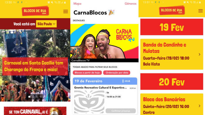 O aplicativo "Blocos de Rua - Carnaval 2020" cobre a programação de carnaval em São Paulo, Rio de Janeiro, Belo Horizonte, Salvador, Florianópolis, Recife, Olinda, Brasília, Porto Alegre e Fortaleza.