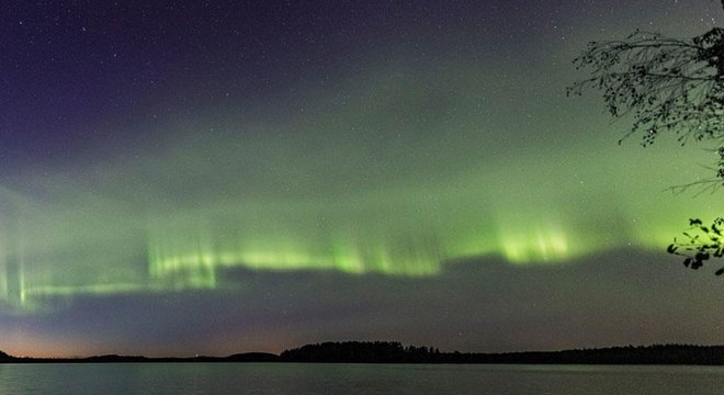 O fenômeno, caracterizado por ondas de luz verde no céu, acontece quando partículas elétricas emitidas pelo Sol entram na atmosfera da Terra e colidem com gases como oxigênio e nitrogênio.