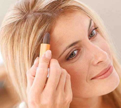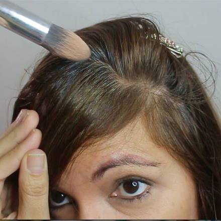 Para usar a sombra, como existem mais opções de cores, basta escolher a que mais se aproxima do seu tom de cabelo e aplicar também com o próprio pincel de sombra, nas partes brancas.