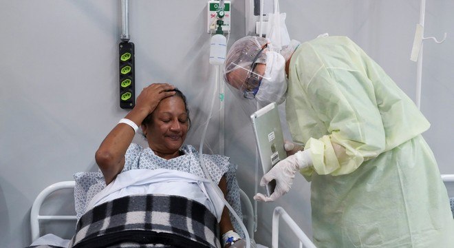 Maria Lúcia Farias abre um sorriso ao olhar para um tablet: depois de quatro dias internada com o novo coronavírus em um hospital de campanha em Santo André (SP), ter aquele aparelho em sua frente significava que, finalmente, ela poderia se comunicar com a família.