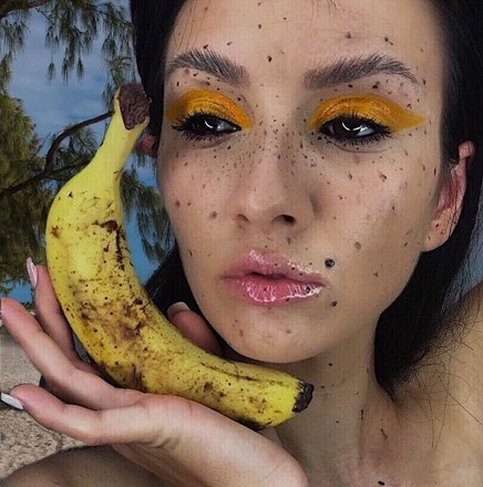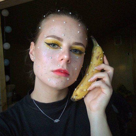 A maquiadora @aleksandra_zaplata usou pérolas para complementar o visual de banana