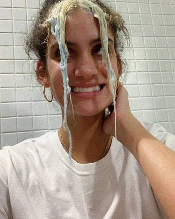 Quem também descoloriu os fios foi Laura Fernandez, nora de Preta Gil
