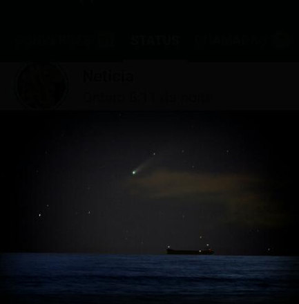 Na região Sul e Sudeste a visualização do cometa não é tão clara, mas também é possível fazer a observação. Esta foto foi feita no Paraná, na cidade de Terra Rica