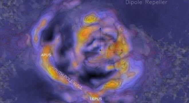 Ao analisarem um catálogo de velocidades de 18 mil galáxias, a equipe pode elaborar um mapa 3D do Universo em que aponta a localização da Muralha do Polo Sul.