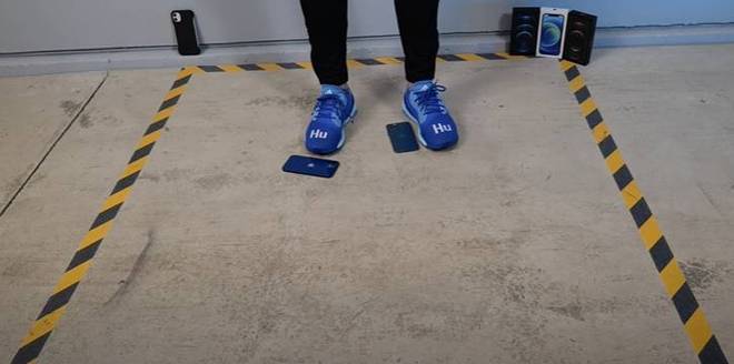 O primeiro teste avaliou os iPhones em uma queda da altura da cintura, como se alguém estivesse usando o celular e derrubasse por acidente. Os dois modelos se chocaram com o chão e resistiram sem grandes danos