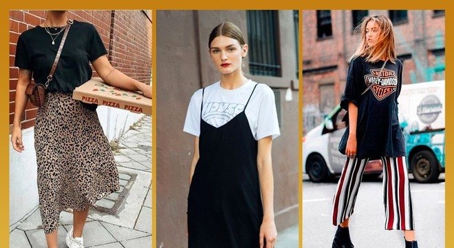 OversizedSe você é fã do street style, a t-shirt oversized (mais larguinha) não pode faltar nos seus looks. Esqueça as calças ou saias, a ideia é usá-la apenas com uma bermuda ciclista ou shorts por baixo, para dar essa impressão de vestido. Se for combinada com um tênis estiloso e uma pochete, seu visual ficará digno de uma fashionista. Experimente!