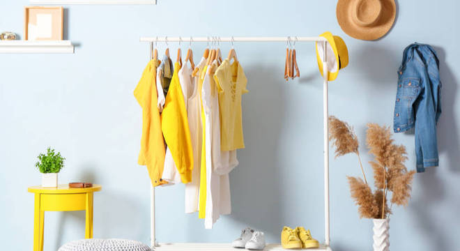 Arara de roupasAs araras são econômicas e, além de substituírem o guarda-roupa, são opções cheias de charme para a decoração do quarto. A dica é apostar em versões de madeira ou ferro e investir em cabides padronizados para transmitir a ideia de espaço organizado. Por fim, vale aproveitar a prateleira inferior para guardar sapatos ou bolsas.