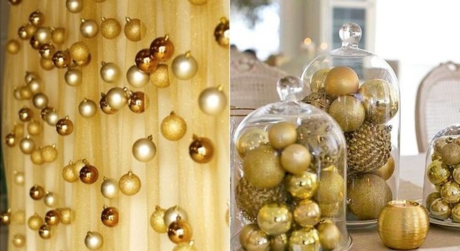 Bolinhas de NatalQue tal aproveitar as bolinhas da árvore de Natal para decorar a sua casa no Ano-Novo? Dá para pendurá-las na cortina com um fio de nylon ou então usá-las na mesa de jantar para deixá-la ainda mais elegante.