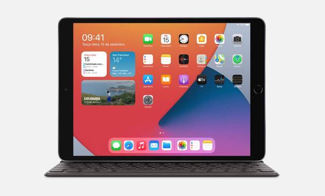 iPad 2020. Em termos de aparência, o iPad 2020 é praticamente idêntico ao modelo anterior, exceto pelo fato de que a tela do novo aparelho foi aumentada de 9,7 polegadas para 10,2 polegadas. O dispositivo é equipado, no entanto, com um processador bem mais poderoso, o A12 Bionic, que representa até duas vezes mais desempenho gráfico e até 40% mais velocidade