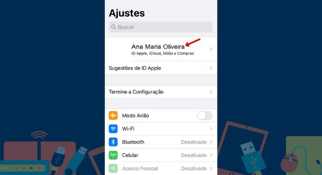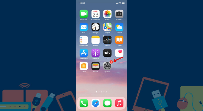 Para realizar o backup de fotos e vídeos pelo iPhone, toque em "Ajustes"