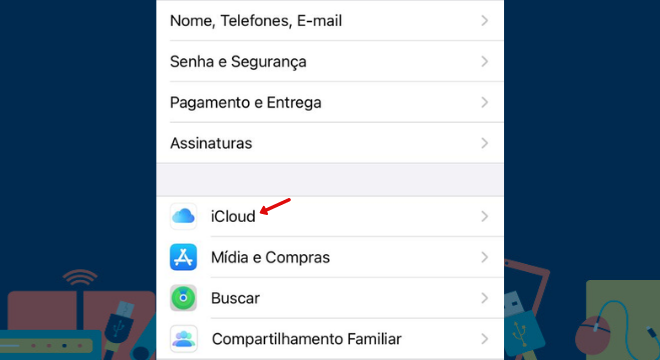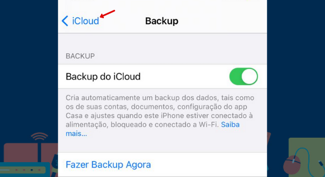 Feito isso, role para baixo novamente e clique em "Backup do iCloud"