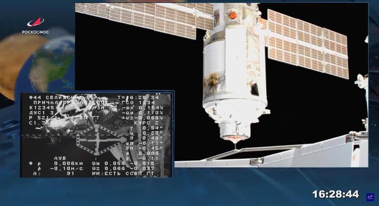 O módulo científico russo Nauka se acoplou nesta quinta-feira (29) à Estação Espacial Internacional (ISS, na sigla em inglês) - informou a agência espacial Roscosmos.